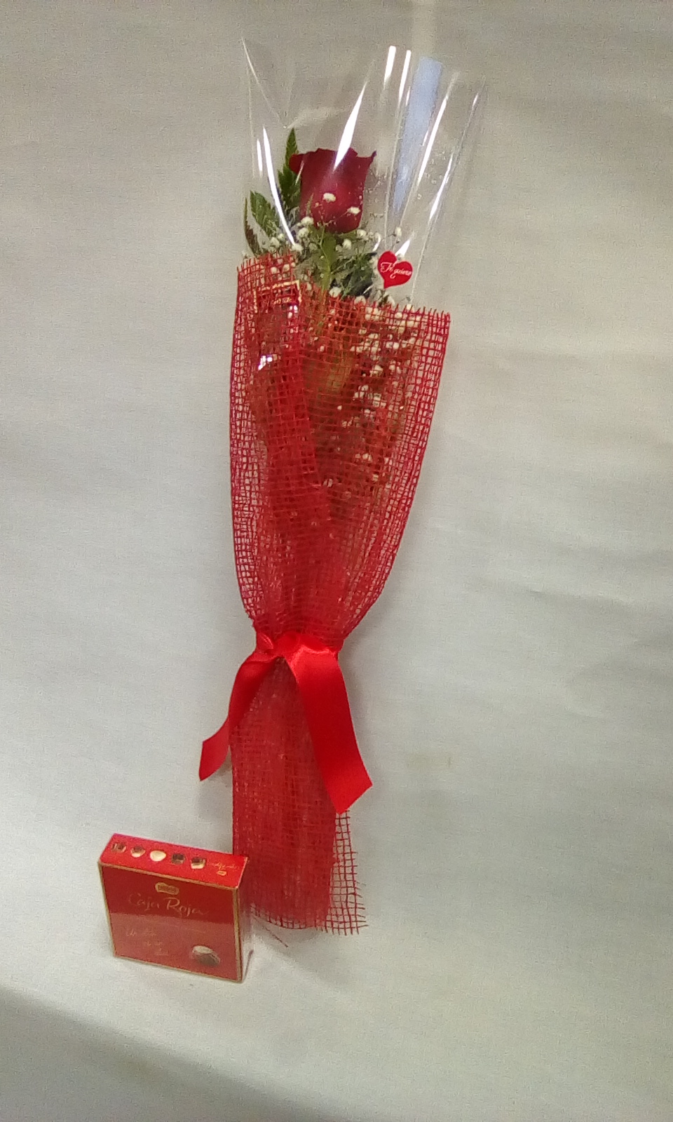 Caja de madera con 6 rosas rojas- o elija color-,bombones y peluche